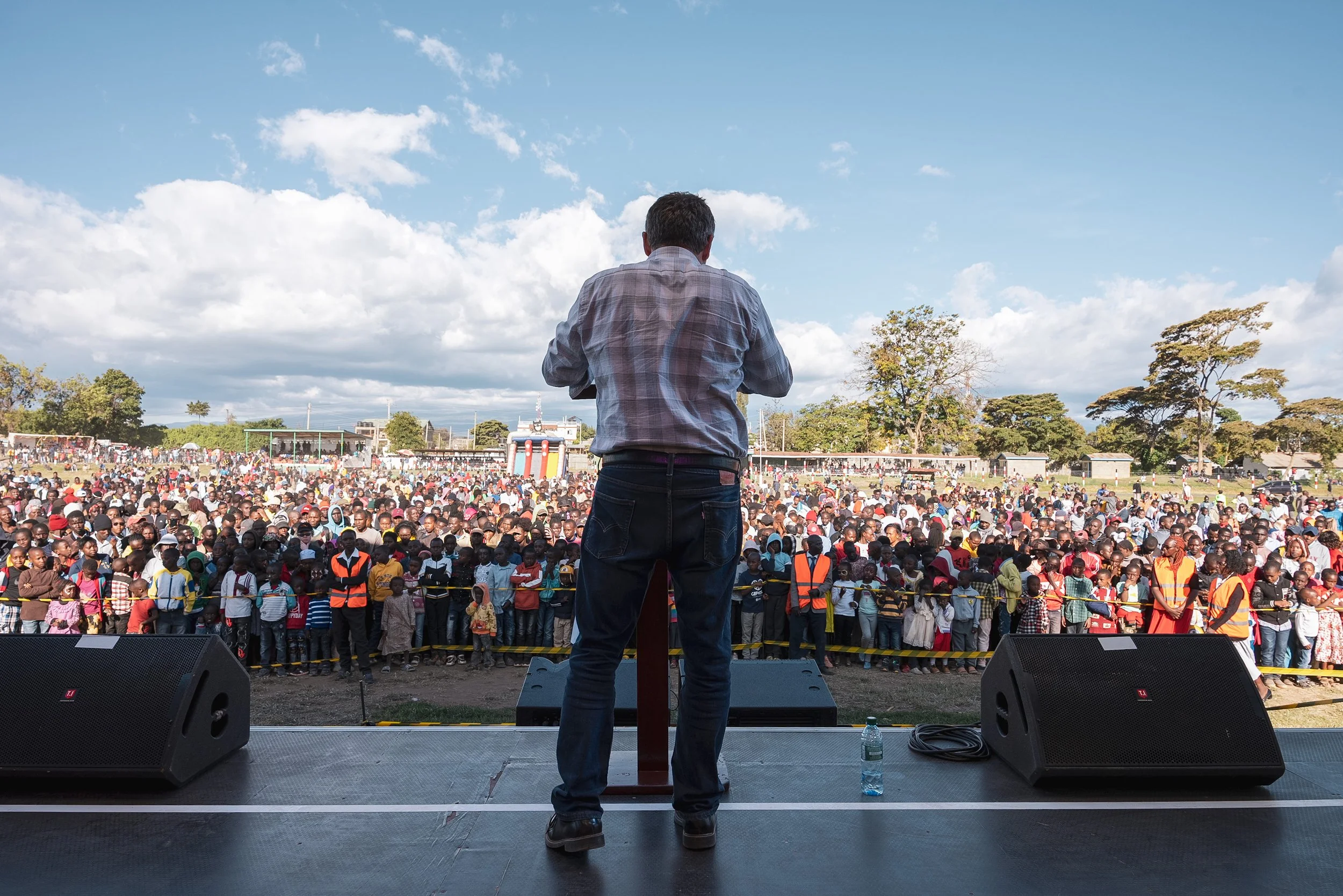he night I preached in Nanyuki: It was the final night of the festival and I was nervous. The entire week of outreach was running through my mind. The remembrance of seeing the powerful African ministry of Kubamba in the schools. All the preaching at the street outreaches, the business and police meetings and everyone involved all week serving, praying, and working. Now we're at the final night of the festival and we're all tired. A good tired for God. I have watched all the musicans, the stunt dudes doing their tricks on the bikes and sharing the Good News of Jesus. Then the young powerful team of Mission Trust from Manchester, England took the stage. They did great singing, dancing, and sharing their love for Jesus. Now, I am about to walk on stage, my hands are sweating, I have been praying and preparing a message entitled "The Greatest Love". My main text will be the most famous verse in all the Bible: John 3:16. But, I will use about 25 different verses tonight. I am praying that God will speak through me to all who are in attendance. The field is full of people. Some are here and they are hurting, and hoping to find answers for life. Some are parents that are praying their teenager will open their heart to Jesus. All of us need the Lord. I take the stage, open my Bible, and start preaching. There are thousands gathered here tonight, I preached my best for my Lord. I am intentional to share the whole Gospel, nothing less than what Jesus has done on the cross to save sinful humanity. At the end, I give the invitation to receive Christ. I feel drained spiritually, emotionally, and physically. At the same time, I feel a rush of Holy Spirit power as I watch hundreds stream forward to make a public profession of faith and pray with me to recieve Jesus as their personal Savior. What a powerful God we serve! What an honor to preach His Good News of salvation and see Him draw men, women, boys and girls to Himself. All glory to God! May Jesus be honored and glorified.